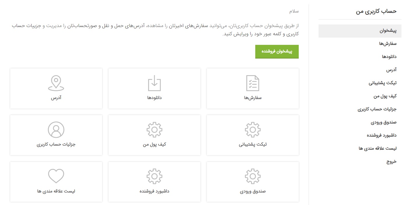 در قسمت پیشخوان، می‌توانید اطلاعات مختلف خود را بررسی یا ویرایش کنید