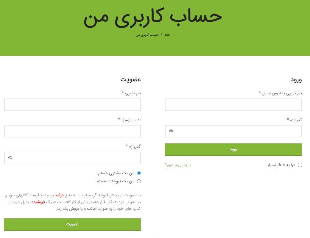 اگر می خواهید کتاب (های) تان را بفروشید، "من یک فروشنده هستم" را انتخاب کنید