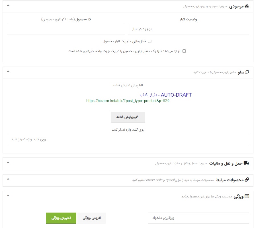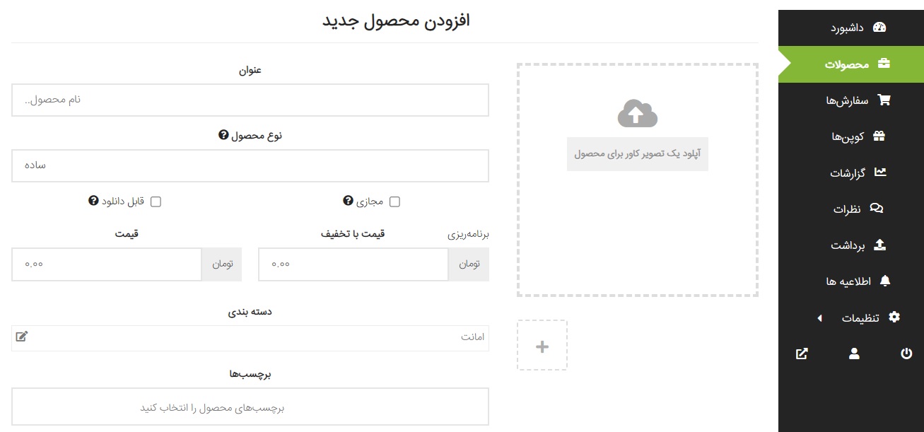 هنگام افزودن محصول جدید، موارد زیر را پر کنید